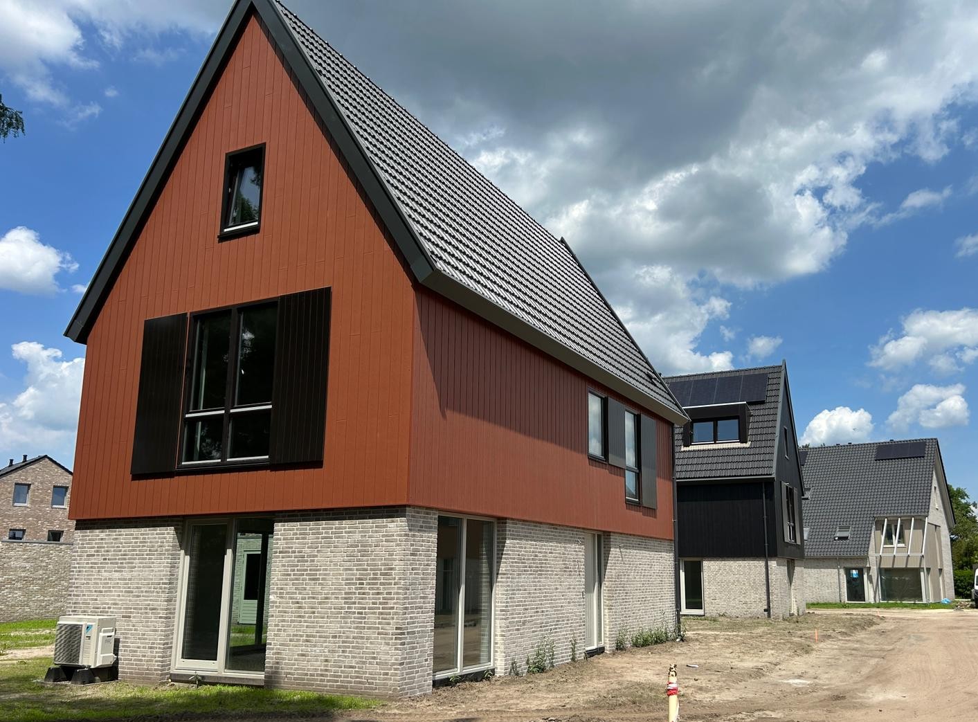 Het ontwerp voor de gevels kwam van de architect, maar de uitvoering, tot in de kleinste details, was in handen van VM Geveltechniek. Met technisch vakmanschap en oog voor kwaliteit en detail hebben we Cedral Click gevelbekleding aangebracht in vier verschillende kleuren. Dit geeft de woningen een uniek karakter en past perfect in de groene omgeving van deze nieuwe wijk.